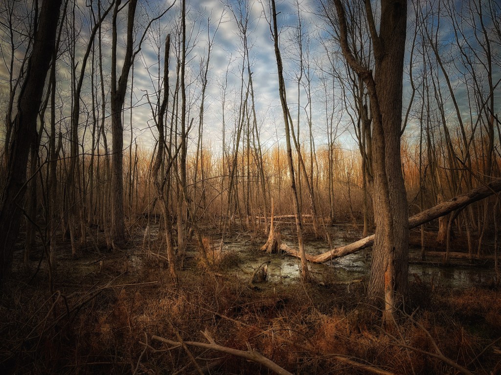 “Why I like it: There is a wonderful tonal contrast between the muted warm colors of the swamp and the cool colors of the clouds and sky. Like all good landscapes I feel as if I could step into the scene with little fanfare except maybe to watch out for late season mosquitoes.